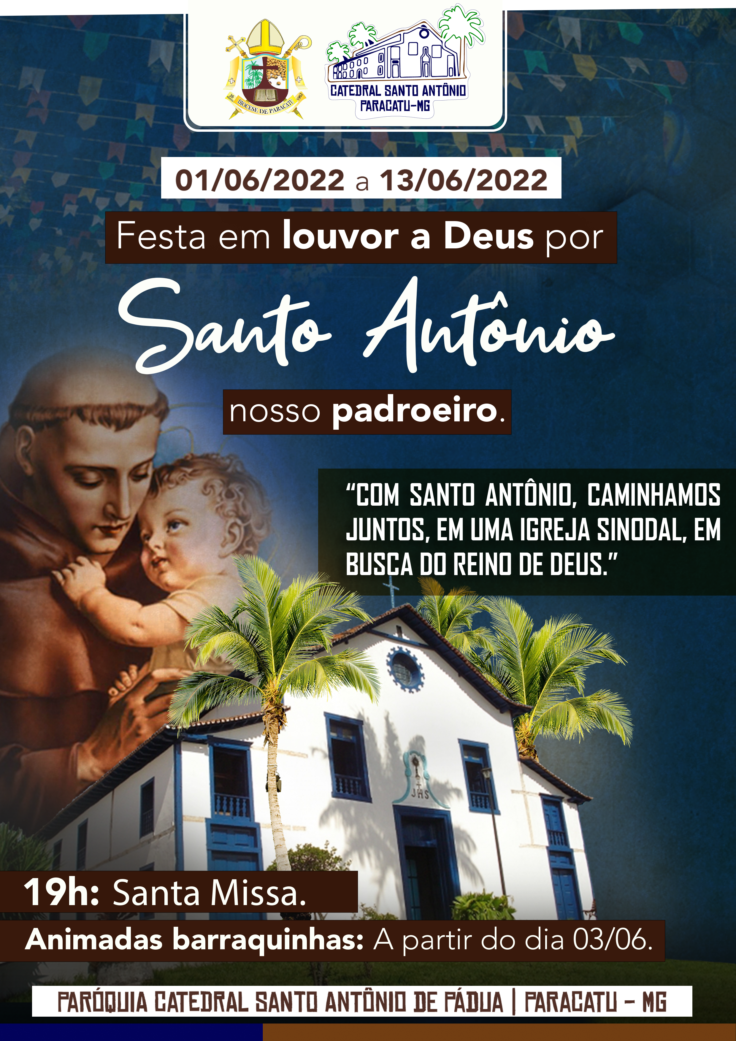 No dia 01 de Junho de 2022 daremos início a Festa de Santo Antônio de Pádua em Paracatu-MG.