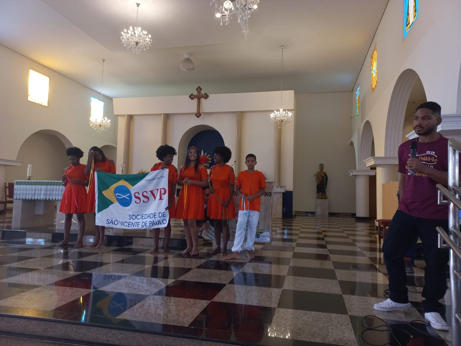 Contamos com a presença do Diácono Tulio, membro da Congregação da Missão; Cfd. Cristian Reis da Luz, Confrade de Belo Horizonte, ex-presidente do Conselho Nacional do Brasil (CNB); Cfd. César Custódio da Silva, Coordenador da ECAFO do CNB; Csc. Hellen Dayane Silva Borges, Coordenadora da CJ da Região V do CNB; Cfd. Dorival, Coordenador da ECAFO da Região V; Cfd. Renê Pereira dos Santos, Coordenador de CCA’s da Região V, bem como também da Csc. Vânia de Fátima Garcia Siebert, vice-presidente do CNB para a Região V.